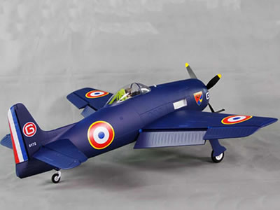 The FlightLineRC F8F-1 Bearcat arrives completely painted in dark blue, with green gear wells. Included inside the box are two optional decal sets: