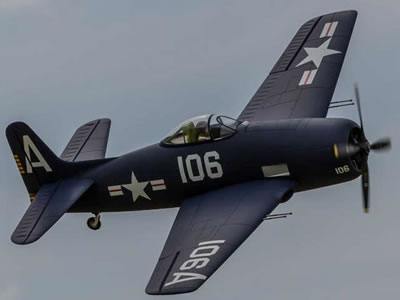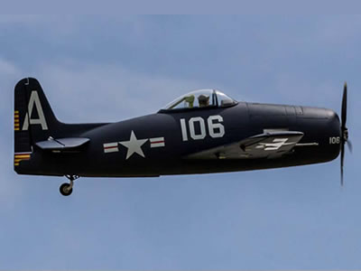 FlightLineRC's F8F-1 Bearcat is a suitable aircraft for novice warbird pilots to advanced pilots. Its 490mm wide landing gear stance provides stable ground handling especially on grass when compared to other aircraft with narrower gear stances or smaller wheels. The power to weight ratio also allows for most any acrobatic maneuver you can imagine, yet the Bearcat's large wing and flying surfaces are most conducive to stable, scale flight, for an overall relaxing flying experience. Landing under power with full flaps can yield a very short landing length, which is ideal for pilots flying in confined areas.