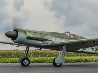 As with all FlightLine RC model aircraft, the Ta-152H features many scale details to bring your model to life including an accurate outline, plastic cowl and intake, cannon, exhaust stacks, correct canopy shape and forward fuselage contours, and gear doors. Split flaps, large wheels, and a wide stance on metal trunion retractable main landing gear make landings predictable and stable. This is easily one of our best handling aircraft on grass under the 1350mm class size. A beautiful base paint job with 18 included tail number decals gives you multiple options to stand out at your flying field!