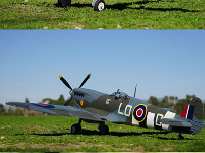 The Spitfire also features oversized retracts with metal trunions and metal reinforcing plates,Slightly oversized tires help to minimize nose overs,With the recommended 4s 2650 mAh battery we obtain 5-6 minutes of mixed throttle scale flight,The model can also accommodate an 4s 3000mAh or even 4s 4000mAh battery for longer flight times, but the 2650mAh and 3000mAh are the best balance between speed, vertical power, flight duration, and wing loading
