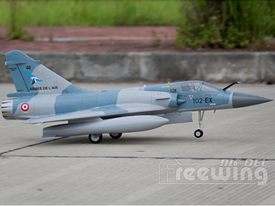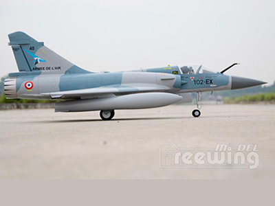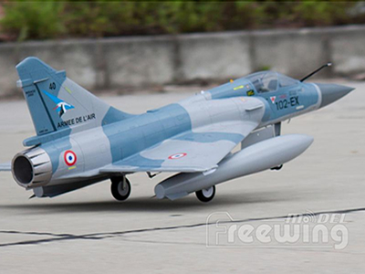 Additional upgraded features include a 80A Hobbywing ESC, 9g precision servos, and electronic retracts with full metal shock absorbing struts. Own the latest, highly detailed, best built RC foam jet on the market from Freewing - the Mirage 2000.